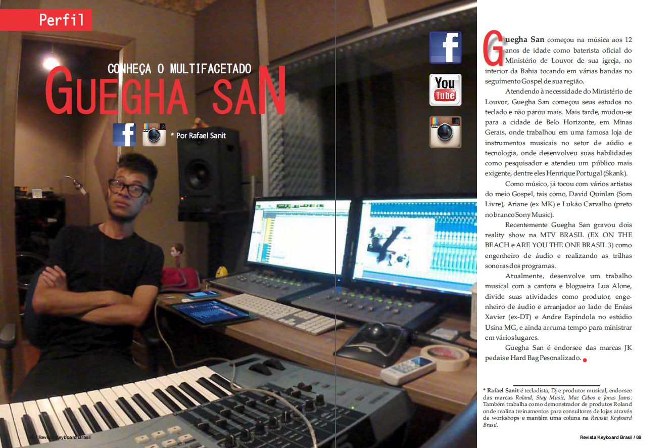 Atendendo à necessidade do Ministério de Louvor, Guegha San começou seus estudos no teclado e não parou mais. Mais tarde, mudou-se para a cidade de Belo Horizonte, em Minas Gerais, onde trabalhou em uma famosa loja de instrumentos musicais no setor de áudio e tecnologia, onde desenvolveu suas habilidades como pesquisador e atendeu um público mais exigente, dentre eles Henrique Portugal (Skank).